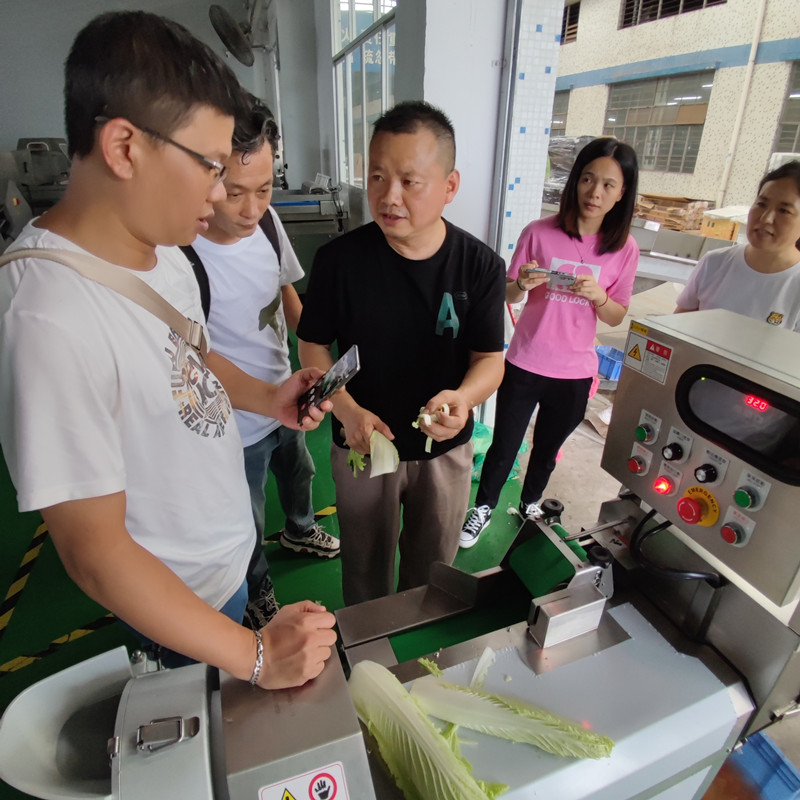 更新時間:2022-8-17 點擊:1472次有朋自遠方來不亦樂乎!果蔬去皮機,多功能切菜機,切肉機,洗菜機,客戶全部現場試機,現場交流,滿足客戶需求是我們企業發展的核心動力。歡迎新老朋友光臨咨詢!