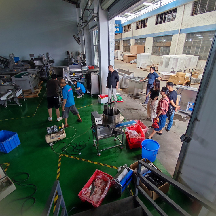 今天的客戶有特點啊! 好幾波客戶都是購買肉類切割設備的!鮮肉切絲機,鮮排骨切塊機,鮮豬蹄切塊機,鮮肉斬切機,豬皮去油機悉數亮相。好熱鬧啊!