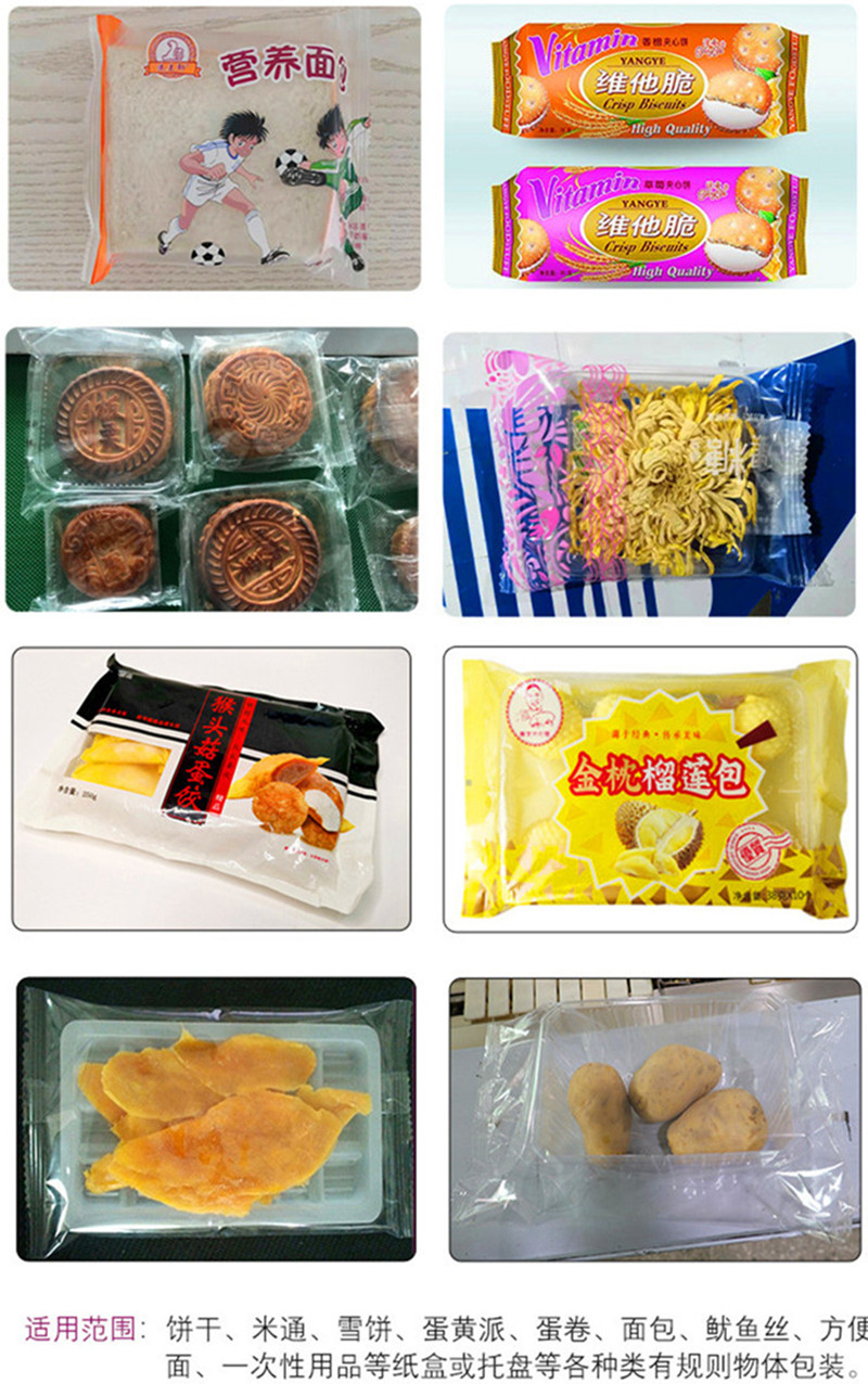 用不落后。 適用范圍: 適合于面包、月餅、水果、肉類、方便面、日用品、工業(yè)零件、紙盒或托盤等各類有規(guī)則物體的包裝。