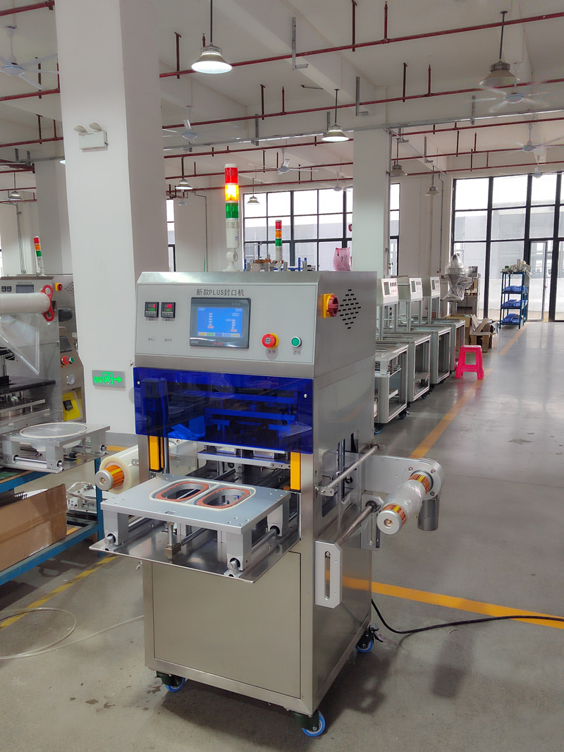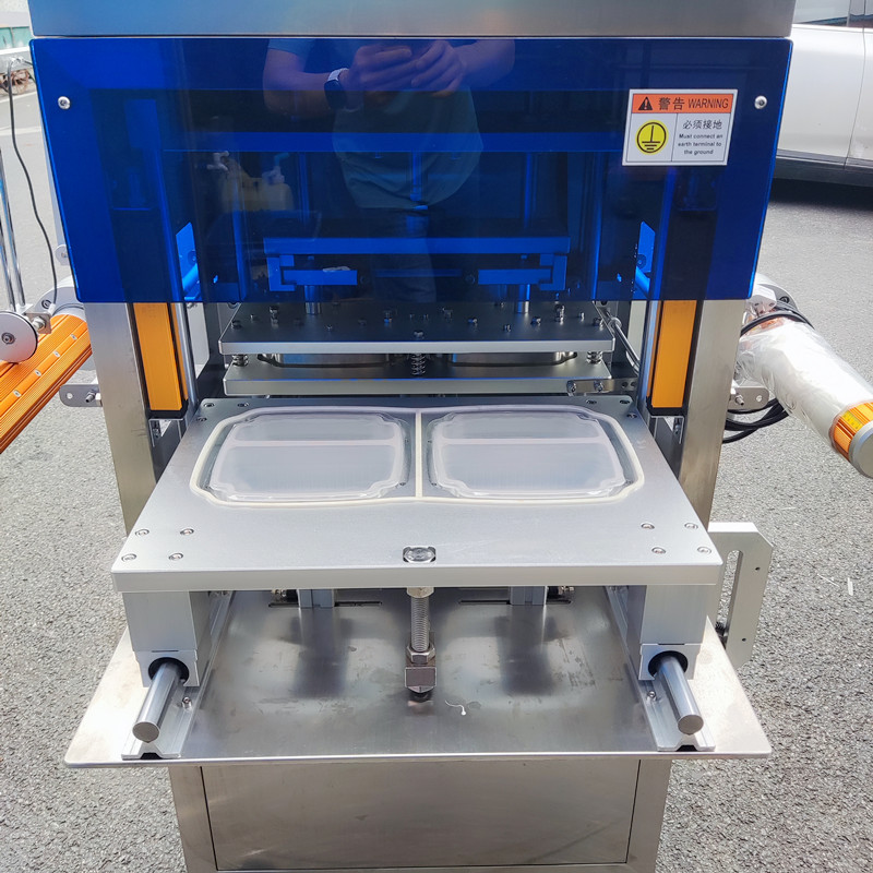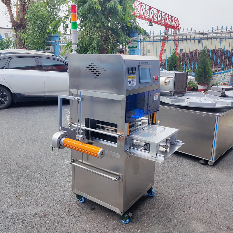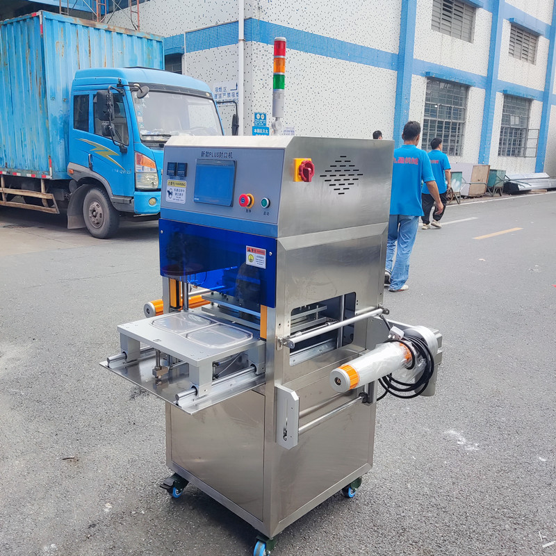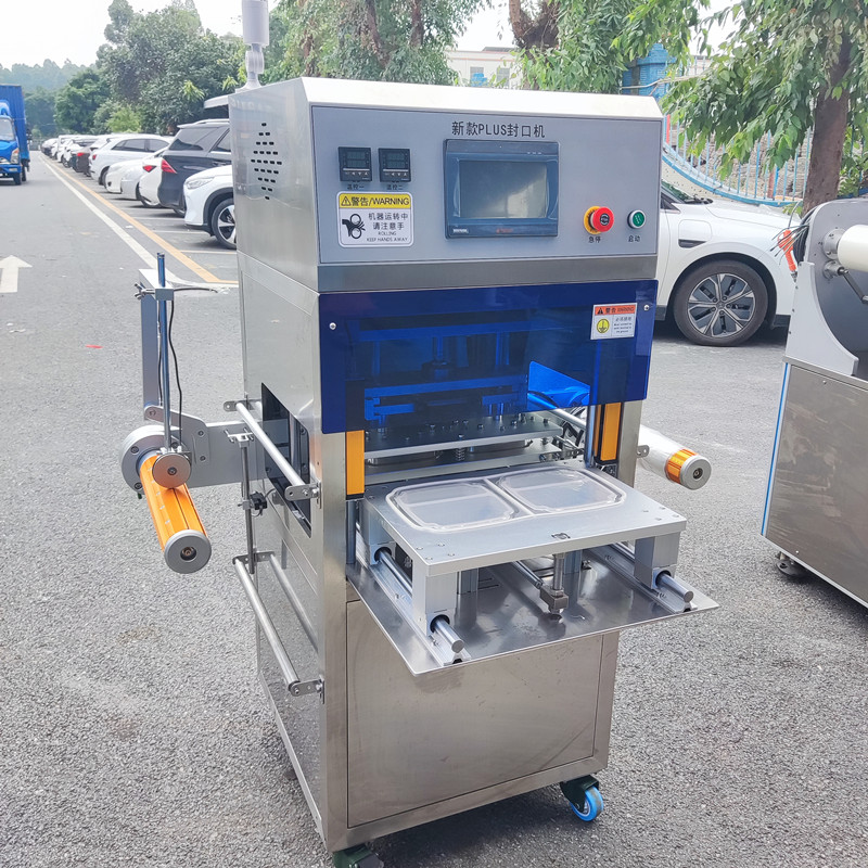 新型商用盒裝封口機主要用大米飯、鮮肉類、熟肉類、果蔬類、以及工業類(醬料、泥料、小部件)等盒裝封口包裝。具有高效安全;操作簡單、密封嚴、不漏、不爆等包裝特點,適合于普通材質包裝和高溫耐蒸煮材質包裝。
